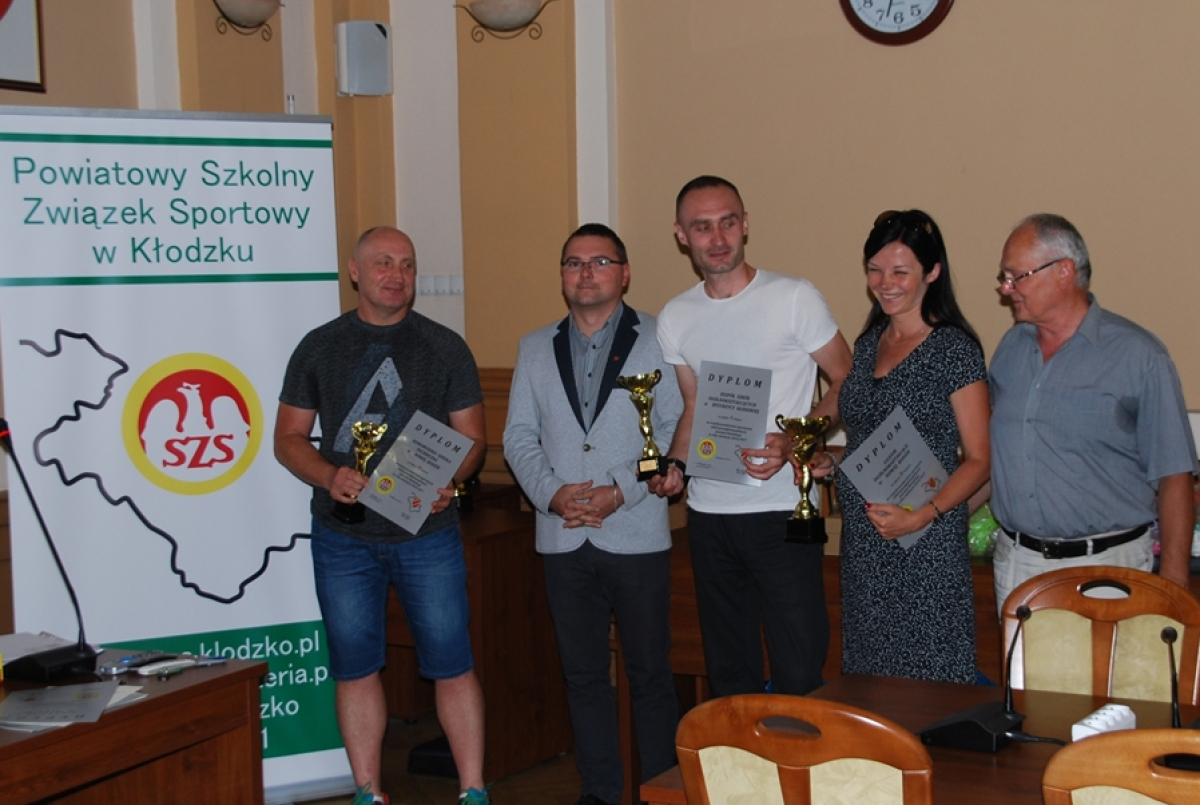 W sali posiedzeń rady powiatu Kłodzkiego odbyło się uroczyste zakończenie współzawodnictwa sportowego szkół powiatu Klodzkiego za rok szkolny 2016/17. W spotkaniu udział wzięli starosta Kłodzki Maciej Awiżeń, wicestarosta Małgorzata Jędrzejewska-Skrzypczyk, członek zarządu Piotr Marchewka, nauczyciele w-f i miłośnicy sportu szkolnego. Z przykrością musimy stwierdzić że zabrakło przedstawicieli nagrodzonych kłodzkich szkół: SP6, SP3 ZSO. KSP. Nagrody w postaci sprzętu sportowego otrzymały zwycięskie szkoły SP2 BYSTRZYCA, G1 BYSTRZYCA i ZSP1 z KŁODZKA, natomiast pamiątkowe plakiety za profesjonalne zorganizowanie imprez sportowych otrzymały: RENATA PAJDZIK, AGNIESZKA ROZLACH-POMORSKA i PIOTR PAWŁOWSKI a za wzorową stronę internetową ŁUKASZ KULASZKO. Pełne wyniki współzawodnictwa znajdują się na naszej stronie wraz z dokumentacją fotograficzną.